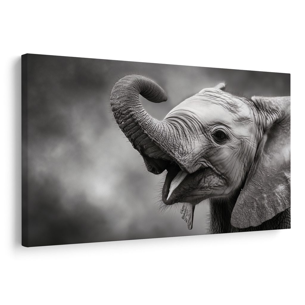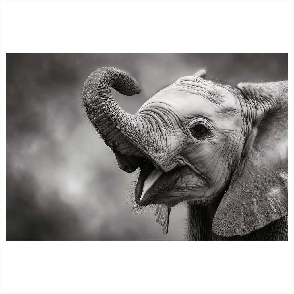 Wandbild Elefantenbaby in Schwarz-Weiß