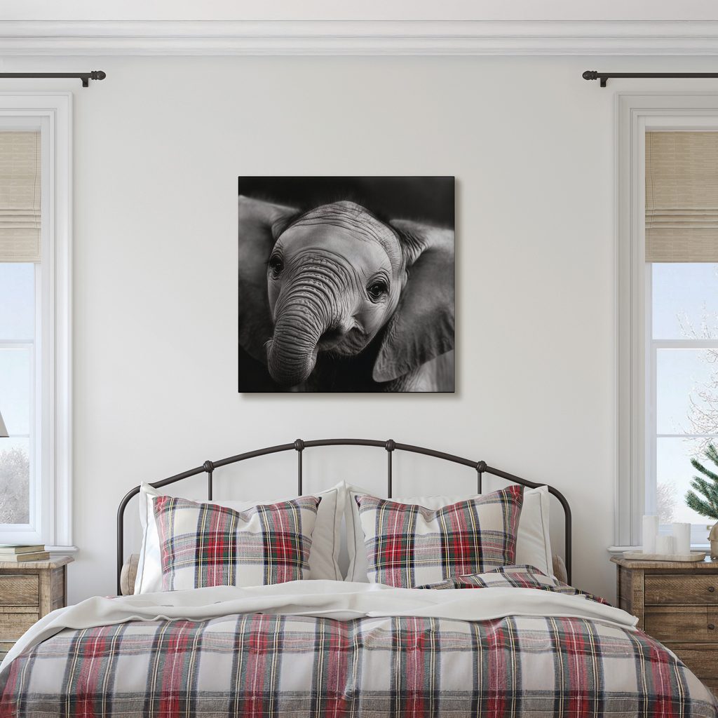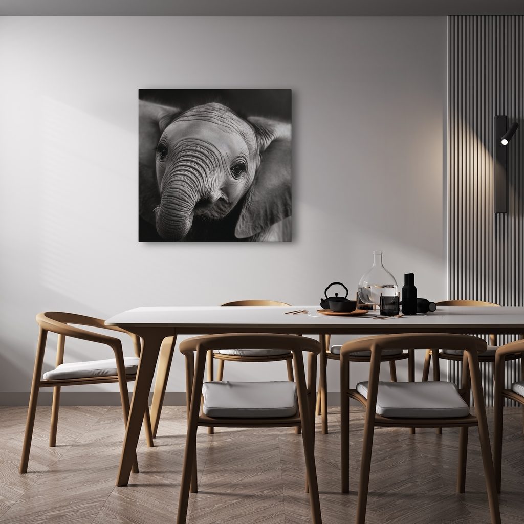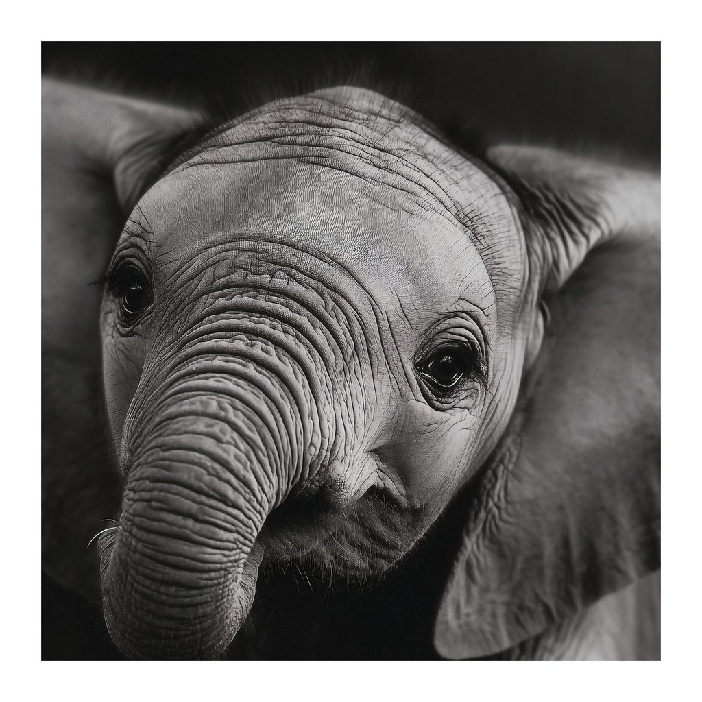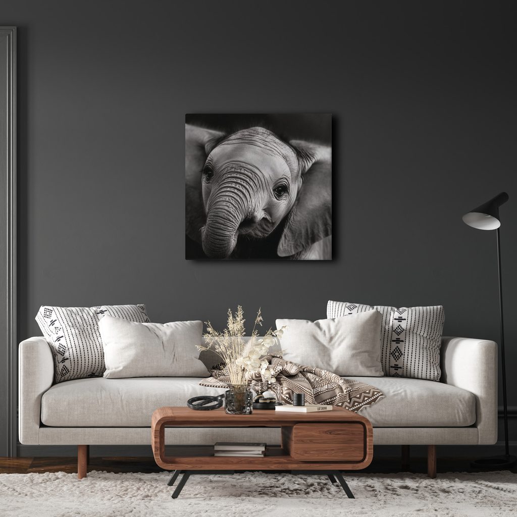 Wandbild schwarz-weißes Elefantenporträt