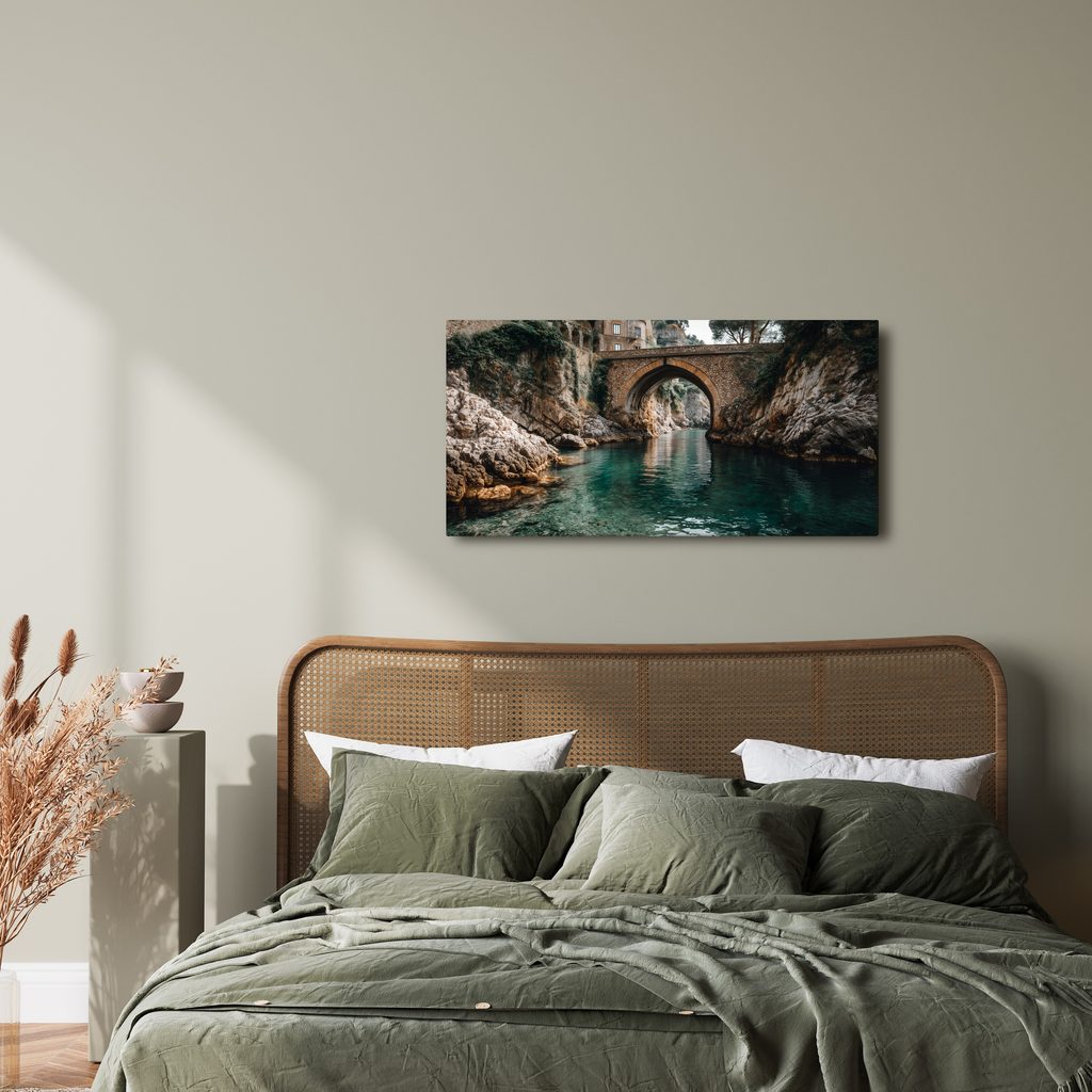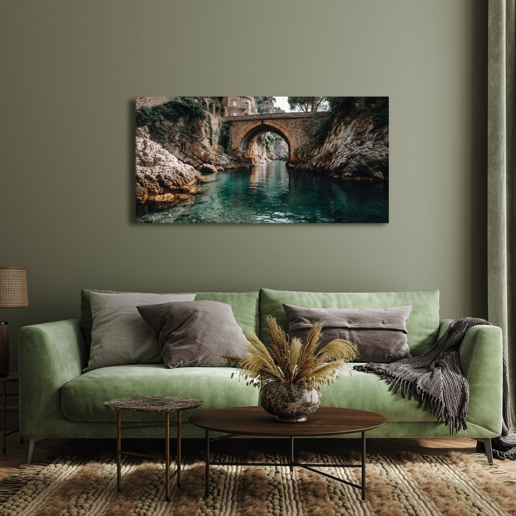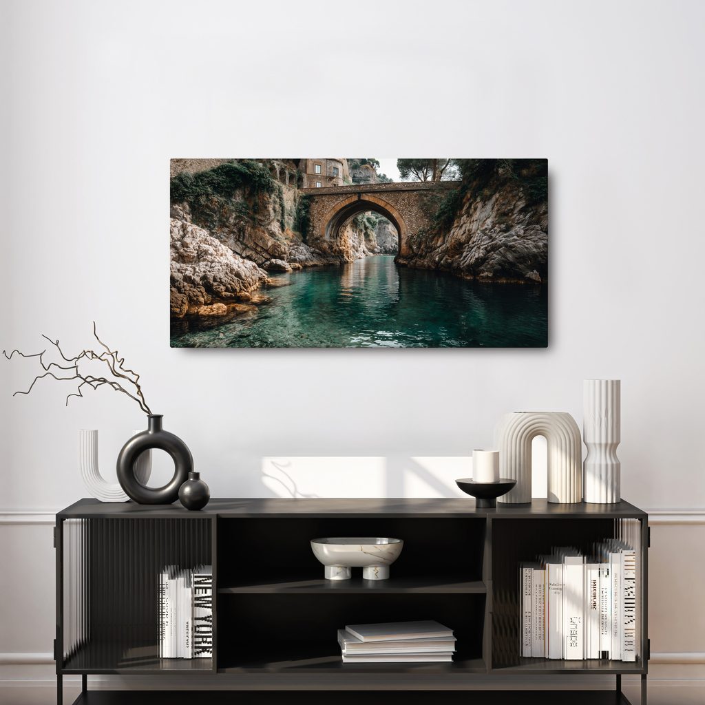 Wandbild historische Brücke über dem Fluss