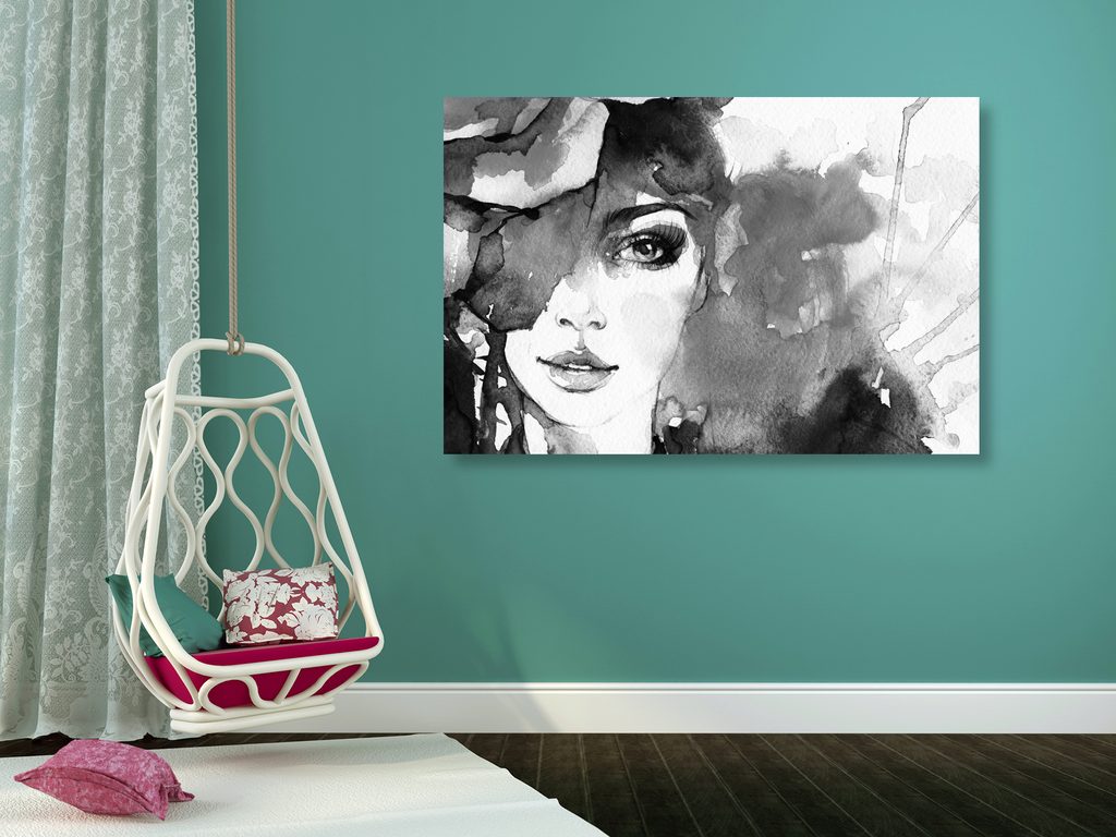 Das schwarz-weiße Porträt einer Frau fängt die Zartheit und Tiefe menschlichen Ausdrucks ein. Die Details des Gesichts werden durch elegante Pinselstriche hervorgehoben, die dem Wandbild Lebendigkeit verleihen. Die Kombination aus Schwarz und Weiß schafft eine dramatische Atmosphäre, die jeden Kunstliebhaber anspricht. Dieses Wandbild passt hervorragend in moderne Innenräume, wo es den Stil und die Persönlichkeit unterstreicht. Hergestellt aus hochwertigen Materialien, garantiert es Langlebigkeit und Farbtreue.