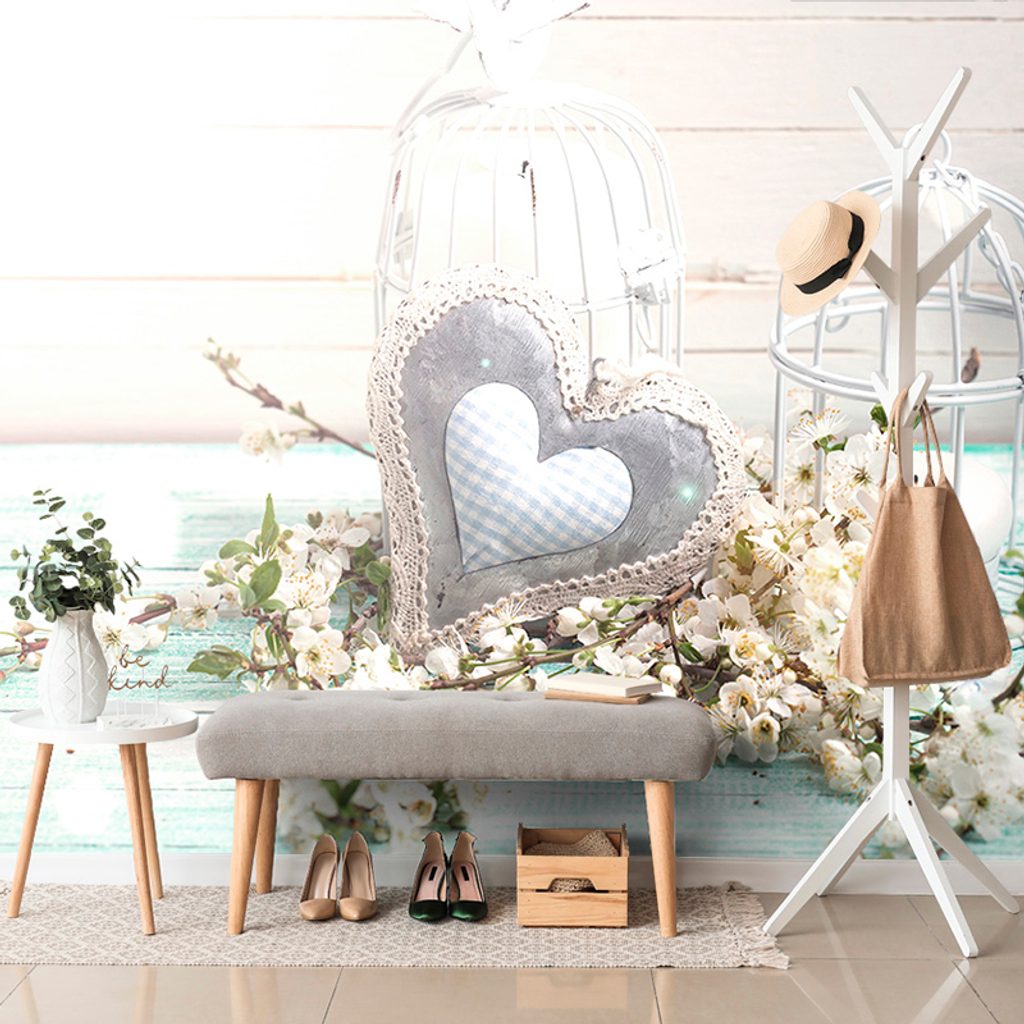 Die Fototapete mit dem Motiv von Vintage-Herzen und Laternen bringt eine romantische Atmosphäre in Ihr Zuhause. Das Hauptmerkmal ist das Herz mit einem feinen Muster, umgeben von eleganten Laternen und blumigen Details. Die Farben sind hell und pastel, was ein angenehmes und gemütliches Gefühl erzeugt. Diese Tapete ist ideal für Schlafzimmer, Wohnzimmer oder kreative Räume, in denen Sie eine ruhige Stimmung fördern möchten. Hochwertige Materialien garantieren eine lange Lebensdauer und eine einfache Anwendung.